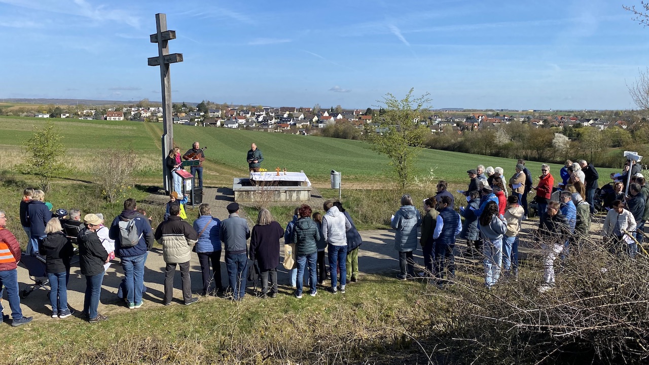 So erreichten die Kürnacher und Estenfelder Emmausgänger das Patriarchenkreuz, wo wir gemeinsam einen Wortgottesdienst feierten.