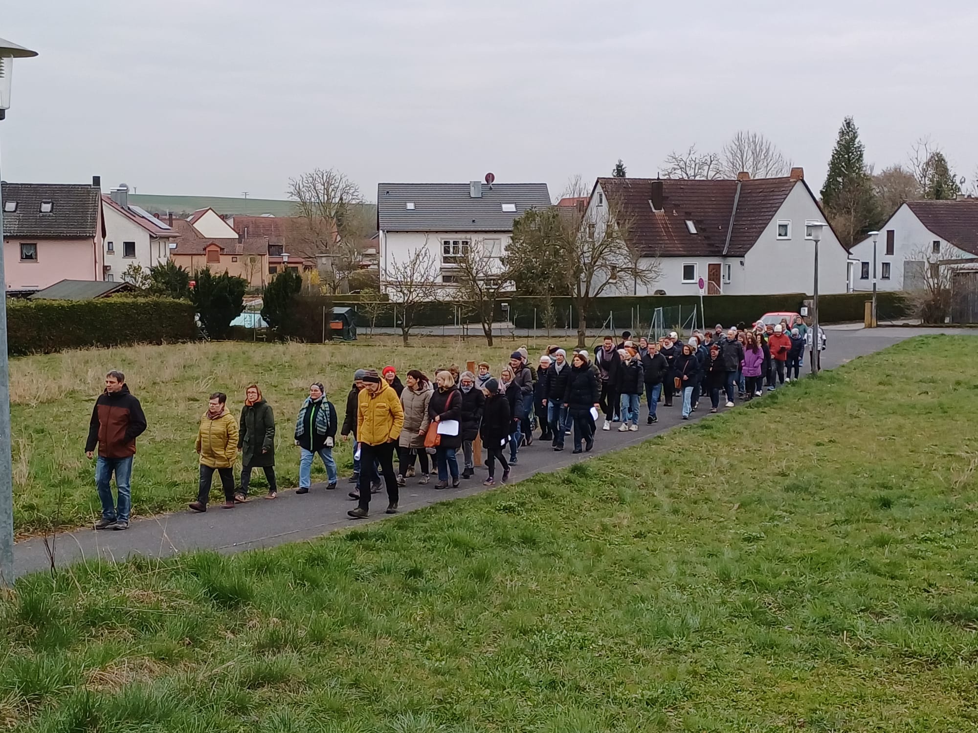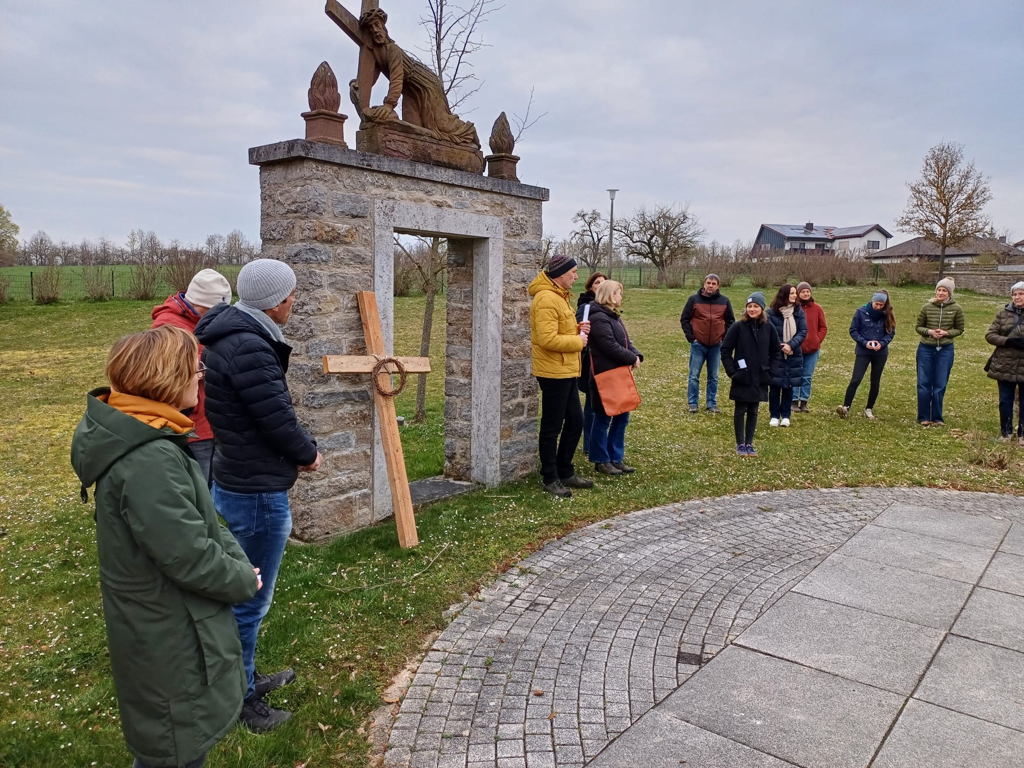 Treffpunkt war um 7.00 Uhr hinter der Pfarrkirche vor der Bücherei. Von dort aus führte der etwa einstündige Rundgang durch den Ort und seine Umgebung. An mehreren Stationen setzten sich die Teilnehmenden mit dem Kreuzweg Jesu auseinander und betrachteten dessen Leiden und Tod aus unterschiedlichen Perspektiven.