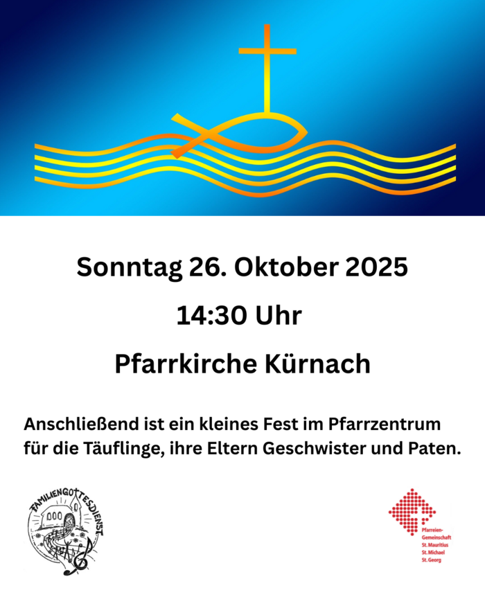 Am Sonntag, 26. Oktober, um 14:30 Uhr feiern wir den 6. Tauferinnerungsgottesdienst in der Pfarrkirche in Kürnach.